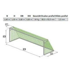 160cm is gemeten aan de binnenzijde van de doelpalen.