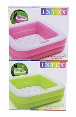 Ideaal als babybad, buitenbox of ballenbakje Vanwege het compacte vierkante formaat is dit badje ook ideaal te gebruiken om in een douchebak een lekker babybadje te maken. Het badje is voorzien van een zachte opblaasbare bodem. Beschikbaar in 2 kleuren: rose en groen.