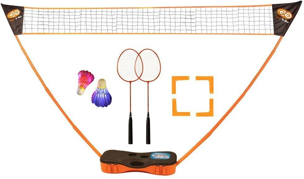 De Get&Go Badmintonset is een sportsysteem dat extreem snel opgezet kan worden. In minder dan 2 minuten heeft u de koffer geopend en het tennisnet opgezet. Plaats de uitschuifbare stokken in de gaten aan de zijkant van de koffer en schuif deze naar de juiste hoogte. Plaats vervolgens het net op de uiteindes en je bent klaar om te spelen! De Get&Go Badmintonset wordt geleverd in een handige koffer met handgreep, zodat u deze eenvoudig overal mee naartoe kunt nemen! Bouw het systeem op in uw tuin of neem hem mee op vakantie of naar het strand.