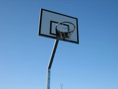 Basketbalpaal met bord van 120 x 90 cm. Zwaar verzinkte paal van 80 x 80 x 4 mm. Dit model dient in beton gestort te worden. Uitgerust met een kunststof bord. De ring en het net zijn uit roestvast staal.