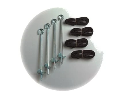 De ankerset zorgt ervoor dat de trampoline zelfs bij extreem weer stevig op de grond blijft staan.