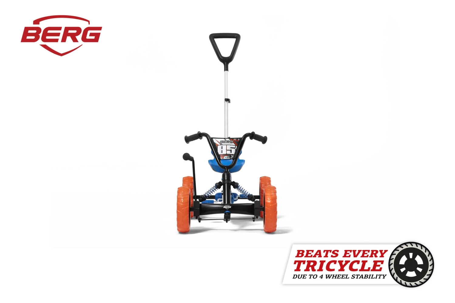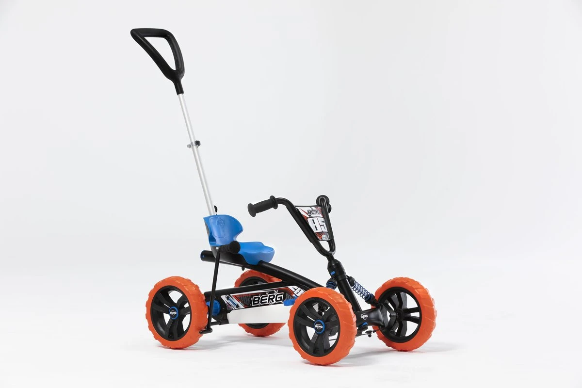 De BERG Buzzy Nitro is nu ook als BERG Buzzy 2-in-1 leverbaar. Deze Buzzy Nitro is uitgerust met een schakelbare vrijloop, een duwstang en een gebruiksvriendelijk stuurslot. Hierdoor is de stabiele skelter nu ook te gebruiken als duw-skelter waardoor je met je kind gemakkelijk en veilig op pad kunt.
