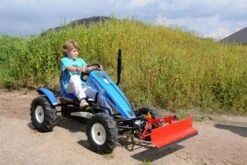 Het boerderij avontuur wacht op jou! Met deze BERG New Holland skelter ga je geweldige avonturen beleven. Door de indrukwekkende grove banden en de schommelas heb je extra veel grip in de modder en blijf je op oneffen terreinen stevig op de grond! Dankzij het unieke BFR-systeem heb je een handige achteruittraprem en kun je gemakkelijk voor- en achteruit rijden. Maak je skelter nog leuker met verschillende accessoires zoals een liftbakje, de palletvork of een rolbeugel met zwaailicht.