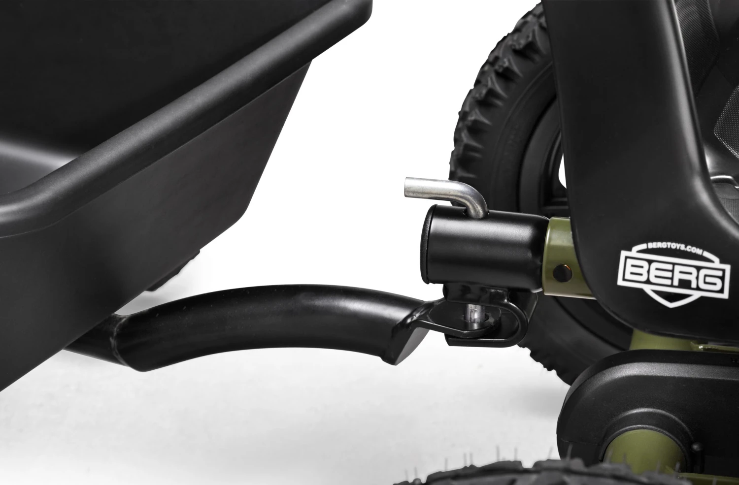 Om deze aanhangwagen achter de Berg Buddy skelters mogelijk te maken is nog een aparte trekhaak nodig. Deze is apart te bestellen.