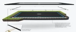 - Rechthoekige trampoline: afmetingen 500 x 300 cm.