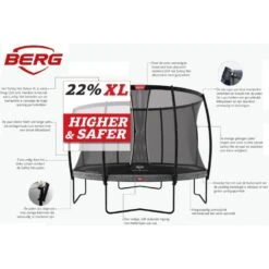 De BERG Champion trampoline biedt fantastisch springcomfort voor iedereen. Het ontwerp van de Champion zorgt dat je lang en veilig kan springen op een kwalitatief uitstekende trampoline. De combinatie van de TwinSpring Gold veren met het AirFlow springdoek zorgt voor minder luchtweerstand en een groter springoppervlak. Dit samen zorgt voor lekkerder én hoger springen! Voor maximale veiligheid is deze trampoline uitgerust met het extra hoge Safety Net DLX XL.