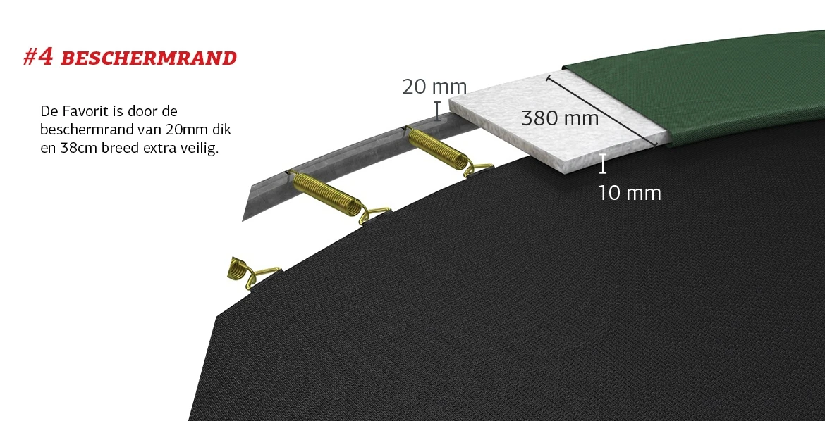 De BERG Favorit zorgt voor jarenlang plezier. Deze trampoline is met veel zorg en aandacht ontwikkeld. Dat heeft gezorgd dat de Favorit een veilige trampoline is van prima kwaliteit. Het stevige Safety Net zorgt dat zowel kinderen als volwassenen veilig kunnen trampoline springen.