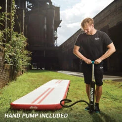 Alle BERG AirTracks worden geleverd met een handpomp, waardoor jij de vering van de AirTrack naar wens kan bepalen. De AirTrack kun je dus overal oppompen en gebruiken waar je maar wilt.