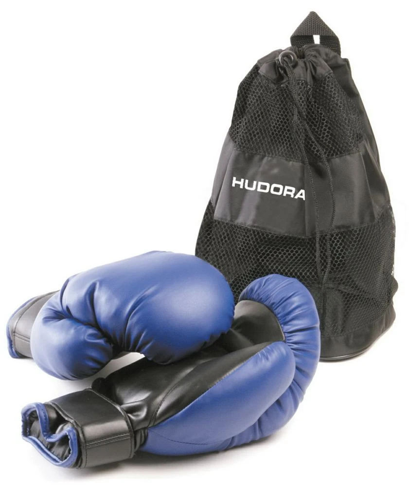 Bokshandschoenen uit kunstleder en klittebandsluiting, maat 8. Compleet met tas.