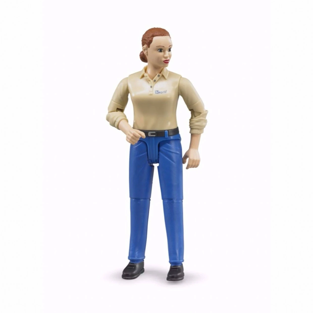 Speelfiguur vrouw van Bruder B-world: blank, bruin haar, blauwe jeans