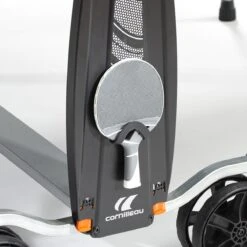 Outdoor tafeltennis met spelcomfort en veiligheid. Het onderstel van de outdoor tafeltennistafel is stabiel en wordt door 25 mm dikke buizen gedragen, die goed tegen corrosie beschermd zijn. De Cornilleau 100S tafeltennistafel outdoor beschikt over stabiele poten met mechanisme om ongelijke grond te compenseren. Het opklapmechanisme van de tafeltennistafel is eenvoudig en veilig. De dubbele, extra grote wielen van de outdoor tafeltennistafel lopen stabiel en licht, zo kan de Cornilleau 100S tafeltennistafel outdoor ook makkelijk opgeborgen of verplaatst worden.