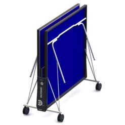 Door het Compact systeem van Cornilleau neemt de tafel minimale ruimte in wanneer hij opgeklapt is. Met de transportwielen kunt u de tafel gemakkelijk verplaatsen.