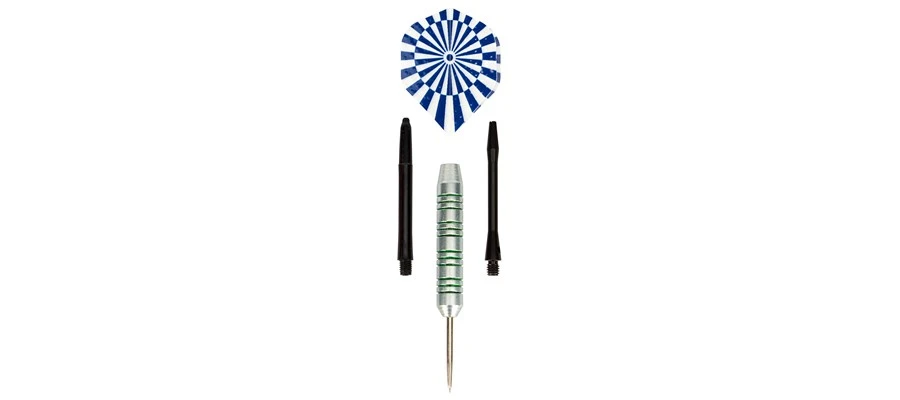 Set van 3 complete dartpijlen en 3 resere shafts compleet met foudraal. De barrel is gemaakt van nikkel, de shafts zijn van aluminium, de pijlen hebben een steeltip en flights zijn 3D.