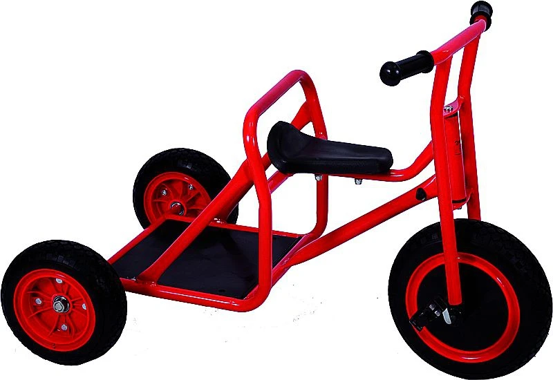 Geweldige driewieler net veel speelmogelijkheden: Leuk om op te rijden, spullen te vervoeren en om samen mee te spelen als romeinse strijdkar met een staande passagier in de bak.