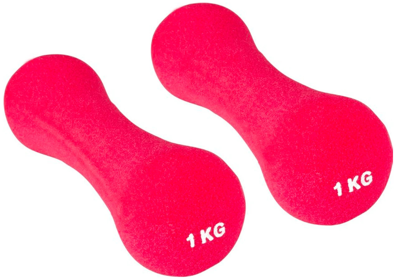 Stalen halterset, geheel overtrokken met neopreen. 1 kg. per halter.