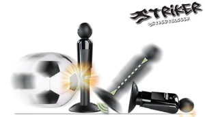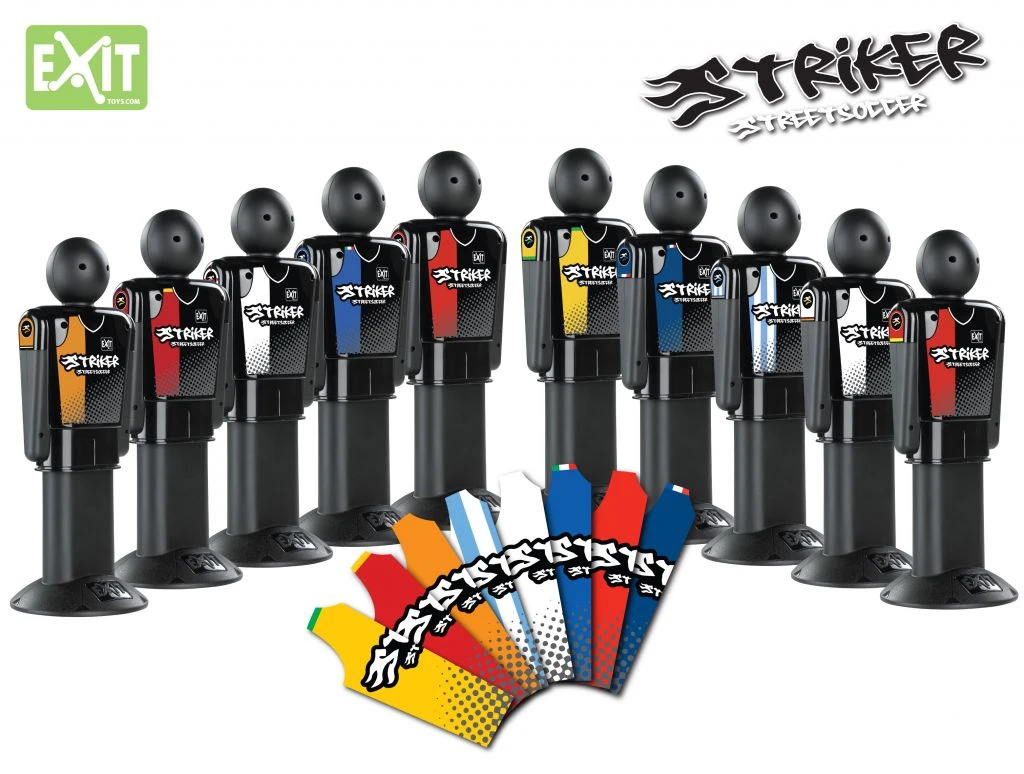 De EXIT Striker is een cool, innovatief en uniek streetsoccer product waarmee je altijd en overal kunt voetbalen. Het is gebaseerd op het alombekende ββpaaltjesvoetbalββ. De EXIT Striker is echter paaltjesvoetbal 2.0β¦ Niets is hetzelfde! Wanneer je de Striker van je tegenstander omschiet, klapt hij en laat hij een fluitsignaal horen. Geen discussie mogelijk! Jij hebt gewonnen! Geen enkele Striker is hetzelfde. Je kunt je eigen shirt kiezen en natuurlijk kun je met behulp van de meegeleverde stickervellen ook nog eens je eigen rugnummer, maar ook je eigen naam kiezen!