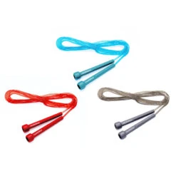 Fitness-springtouw in koker. Gesorteerd in verschillende lengtes en kleuren.