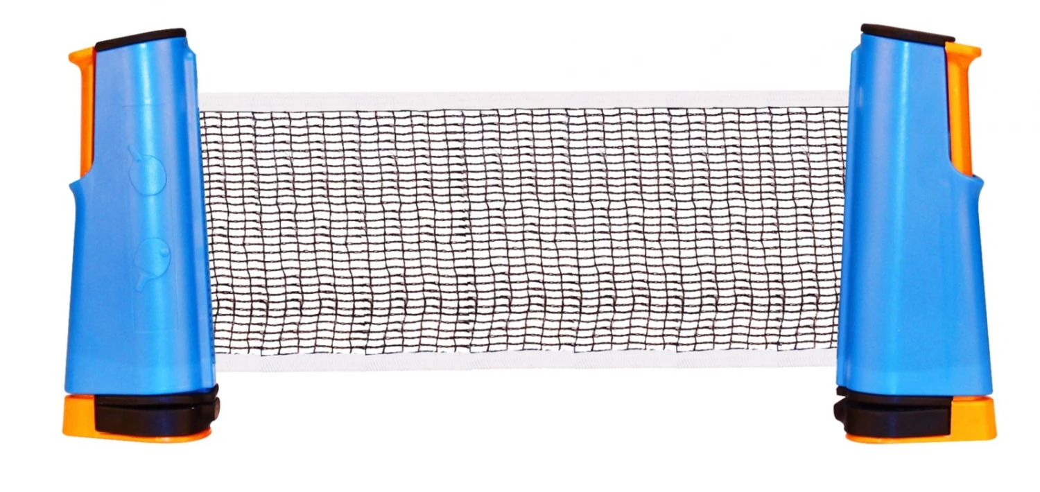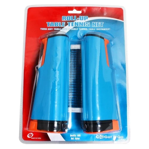 Superhandig tafeltennisnet van Get & Go. Met dit net maakt u in een handomdraai van iedere tafel een tafeltennistafel. Het tafeltennisnet rolt makkelijk uit en rolt d.m.v. een veer automatisch weer op in de netposten, eenvoudig te bevestigen op praktisch iedere tafel. De rubberen doppen laten geen afdruk achter, en het net blijft gespannen. De maximale breedte van de tafel mag 2 meter zijn, de maximale dikte van het blad 4 cm.
