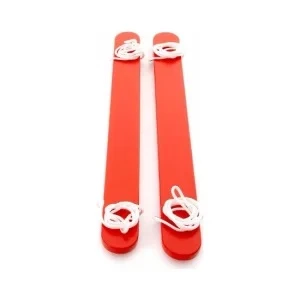 Set van 2 reuzenski’s, vervaardigd uit hout en aan de onderzijde voorzien van anti-slip rubber klossen om de vloer bij indoor gebruik te beschermen.