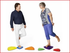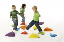 Oefenen op deze stapstenen vergroot het zelfvertrouwen, verbetert het inschatten van afstanden, de coördinatie en traint zowel het dynamisch als statische evenwicht.