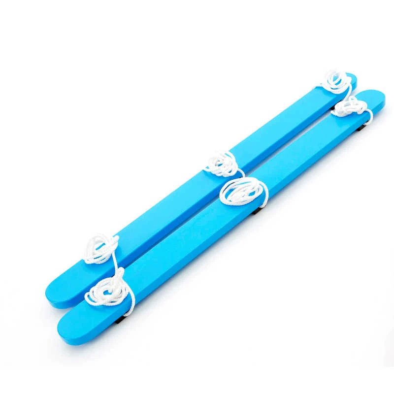 Set van 2 reuzenskiās, vervaardigd uit hout en aan de onderzijde voorzien van anti-slip rubber klossen om de vloer bij indoor gebruik te beschermen.