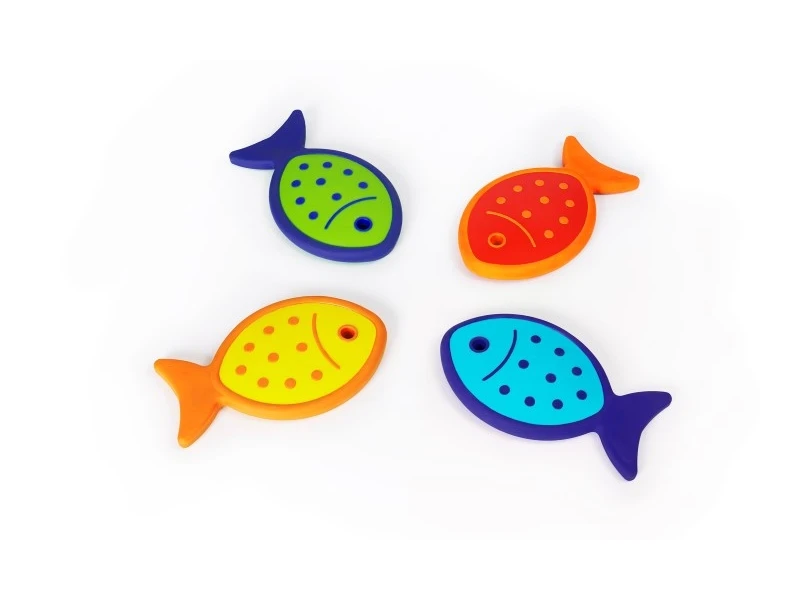 Deze set bevat alles wat 2 kinderen nodig hebben om uit vissen te gaan, nl. 2 hengels, 4 vissen, een haai, 5 ogen om aan de vissen te bevestigen en een luchtpomp. Een boekje met spelmogelijkheden wordt meegeleverd. Prima dus voor de oog-handcoordinatie.