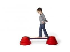 Betreft 1 x balanceerplank met slackline. Een echte uitdaging om al balancerend te bewegen naar de volgende stop over een, bij iedere stap, meedeinend koord. Afmetingen: 72 x 10,5 x 8 cm.