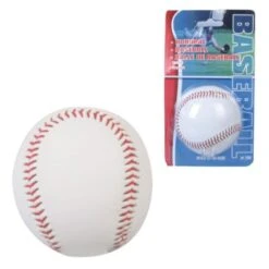 Honkbal. Gewicht: 135 g., diameter 7 cm. Buitenzijde kunstleder, kern uit kurk. Verpakt per stuk op blisterkaart.