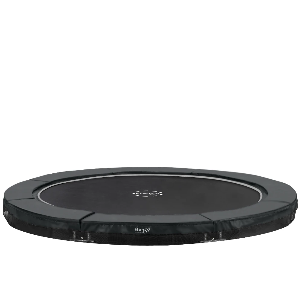 De ETAN Premium trampolines staan voor topkwaliteit en veiligheid en jarenlang springplezier. De inground versie ia altijd uitgerust met het Gold randkussen.wat gekenmerkt wordt door een zware kwaliteit zeildoek. Deze wordt door de fabrikant 5 jaar gegarandeerd. Bovendien is deze aan de onderkant afgewerkt met een luchtdoorlatend doek welke de ruimte van onderkant randkussen tot de aarde geheel afdekt. Daardoor kunnen er geen huisdieren, ballen etc. onder de trampoline geraken.