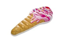 Met dit 1-persoons luchtbed dobber je rond op het water in de vorm van een ijsje. Dit luchtbed heeft een combinatie van kleuren, bruin, roze en wit.