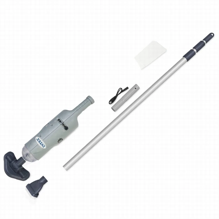 Heb je een klein Intex zwembad (< 450 cm) of een Intex Pure Spa en wil je deze vrijhouden van vuil? Dan is dit de ideale elektrische stofzuiger. De zuigkracht van deze stofzuiger is niet al te zwaar. Je hoeft je dus geen zorgen te maken dat de liner of kuip van je zwembad of spa eventueel beschadigd zou raken door een te hoge zuigkracht. De zuigkracht is overigens gewoon voldoende om ook zand op te zuigen. Erg handig aan de Intex handstofzuiger zijn de meegeleverde telescopische steel, het interne filter, de oplaadbare accu en verwisselbare borstels/zuigmonden.