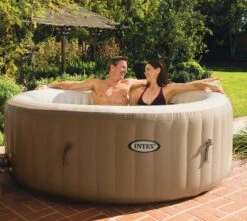 De Intex Pure Spa Bubble Therapy (officiële naam: Intex Pure Spa Bubble Massage) is een mooie ronde, beige opblaasbare bubble-jacuzzi voor maximaal 4 personen. Met Pure Spa haal je een A-merk opblaasbare jacuzzi in huis. De wanden zijn superstevig, het motorblok groot en zwaar maar krachtig, en de bediening enorm gebruiksvriendelijk.