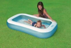 Intex Rectangular Pool Blauw is een standaard kinderzwembad. Dit opblaasbare kinderzwembad is rechthoekig en heeft een dikke (stevige) rand. Daarnaast heeft het bad een zachte opblaasbare ondergrond. Het bad is, naast op het gras, goed geschikt voor op het balkon of terras.