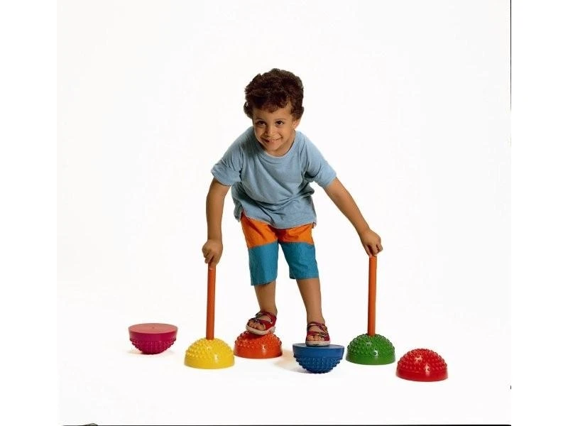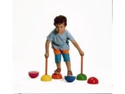 Deze halve bol met met afgeronde nopjes is te verzwaren met water of zand. Als stappenset of balanstraining te gebruiken. Door stokken in de halve bollen te plaatsen kan er een parcours worden uitgezet. Ook te gebruiken voor voetmassage en voor spierversterkende oefeningen.