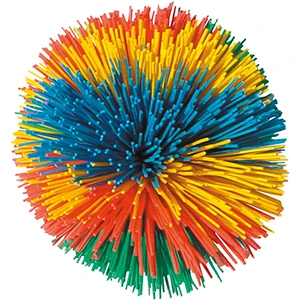 Bal van gekleurde rubberen draden. Ideaal voor alle handelings- en werpoefeningen. Diameter: 6,5cm.