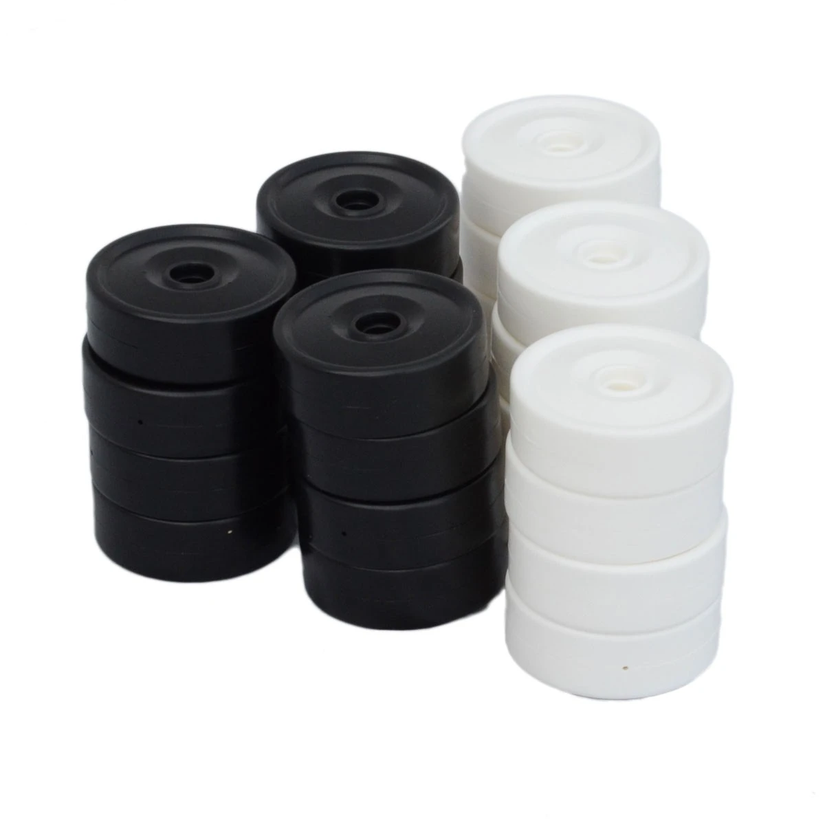 Gigantisch damspel voor gebruik in de buitenlucht. Doorsnede damstenen 25 cm. Een set bestaat uit 2 x 12 stenen. (duitse variant van het damspel)
