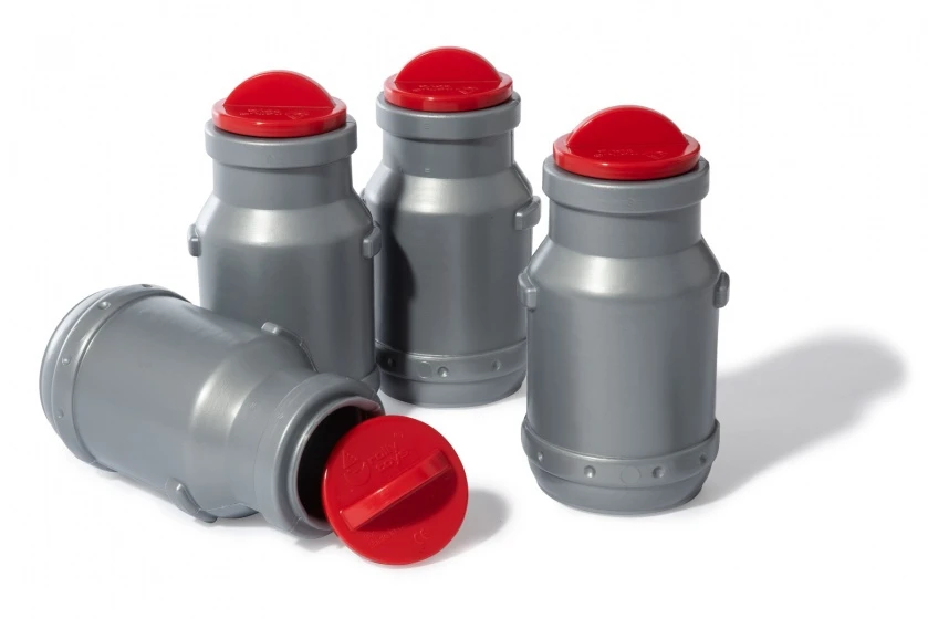 Rolly Toys melkkannen 4 delig grijs rood.