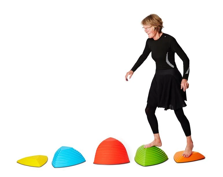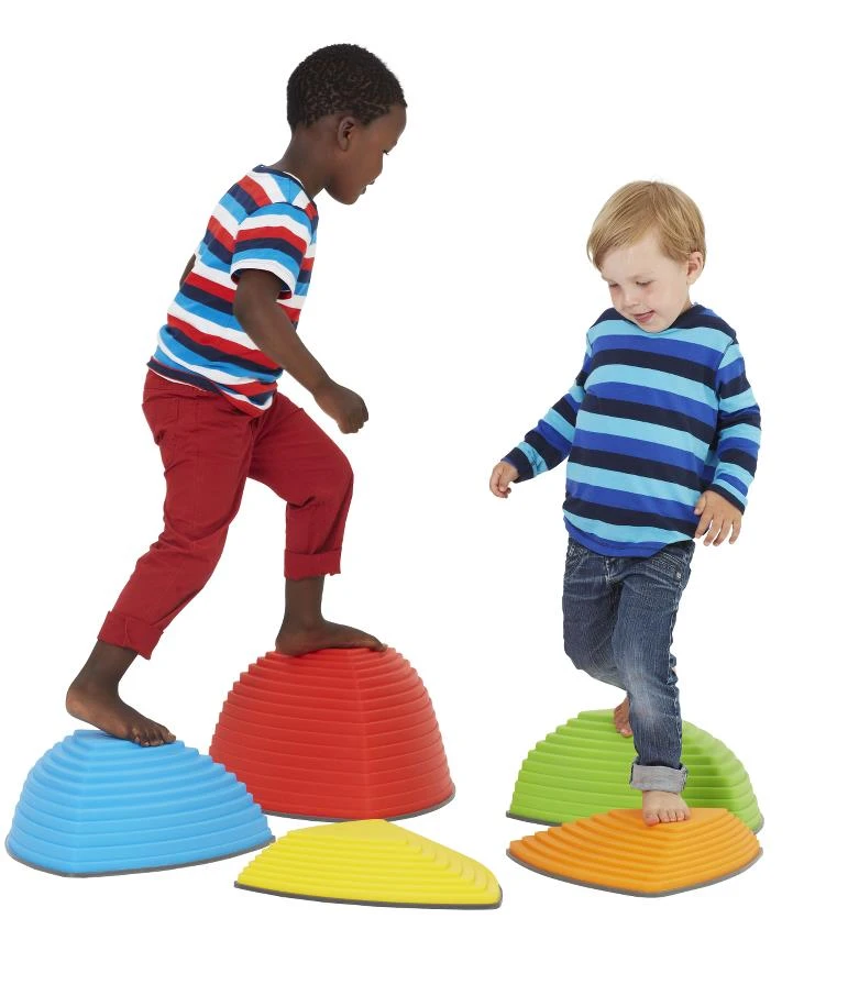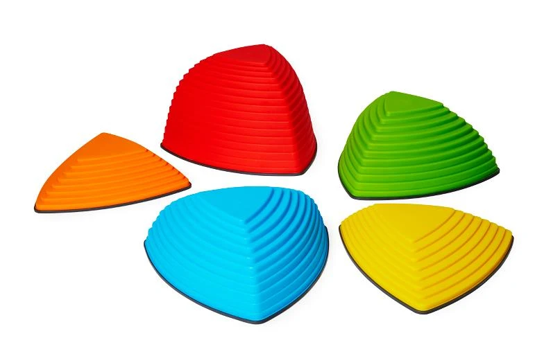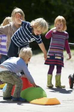 Set van 5 ‘heuveltoppen’ in verschillende hoogten die kinderen ertoe aanzetten van top naar top te springen. Hill Tops ontwikkelen het visueel vermogen van kinderen om afstanden in te schatten en maken ze vertrouwd met hoogten.