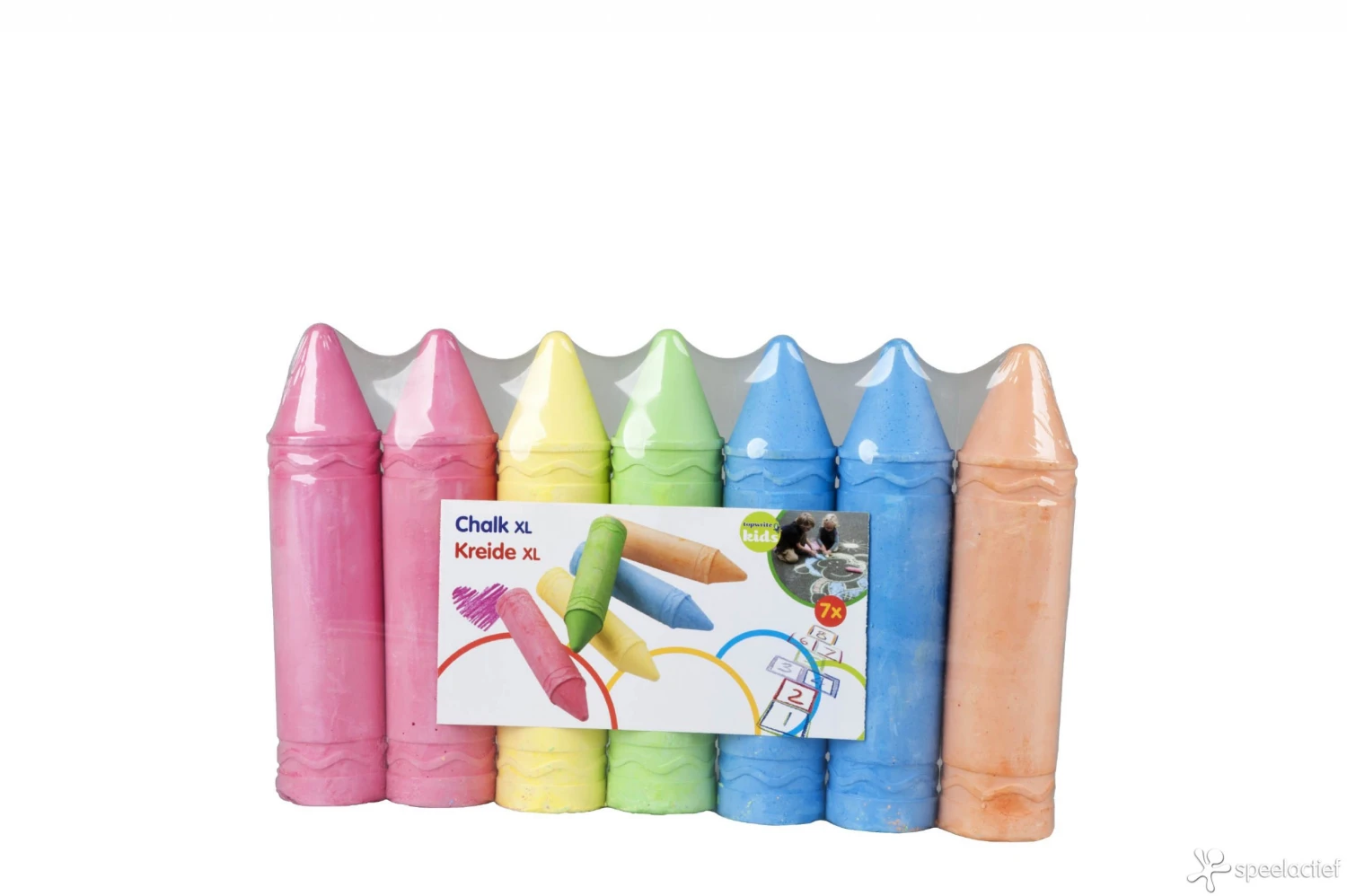 Set van 7 kleuren stoepkrijt in reuzeformaat.