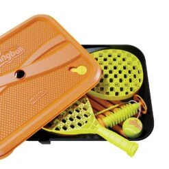 Als je nog niet competitief was, ben je dat nu wel! De Tournament All Surface Swingball van Mookie is een spel dat iedereen in beweging zal krijgen. Compleet met een in hoogte verstelbare paal (1,4 meter), een rubberen tennisbal en twee tennisrackets. De nieuwe en verbeterde basis bevat een geïntegreerd handvat voor gemakkelijk transport en een waterstop om morsen te voorkomen bij het vullen. De All Surface-basis heeft speciale voetjes voor een stabiele gameplay en kan worden omgevormd tot een handige draagkoffer om alles in op te bergen. Swingball is niet alleen geschikt voor in de achtertuin: dankzij de basis kun je overal en op elk oppervlak spelen. Vul gewoon de basis met zand of water en dan ben je klaar om een balletje te slaan! Gemonteerde afmetingen: 46,6 x 140 x 9,6 cm.