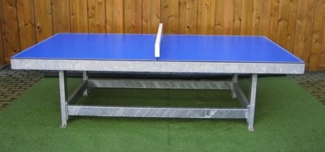 Zeer degelijke en hufterproof tafeltennistafel. Deze tafel heeft een zwaar gegalvaniseerd stalen frame en een extoriet speelveld. Dit speelveld heeft uitstekende speeleigenschappen. De randlijst van de tafel is vervaardigd van een staalprofiel van 100 bij 50 mm.ย Het speelnet is van stalen kokerprofiel.