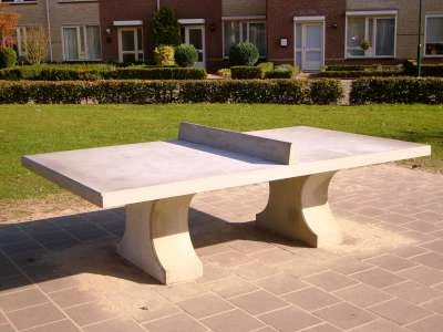 Deze tafeltennistafel is bij uitstek geschikt voor de openbare ruimte. zowel de tafel als het netje zijn vervaardigd uit gewapend beton.