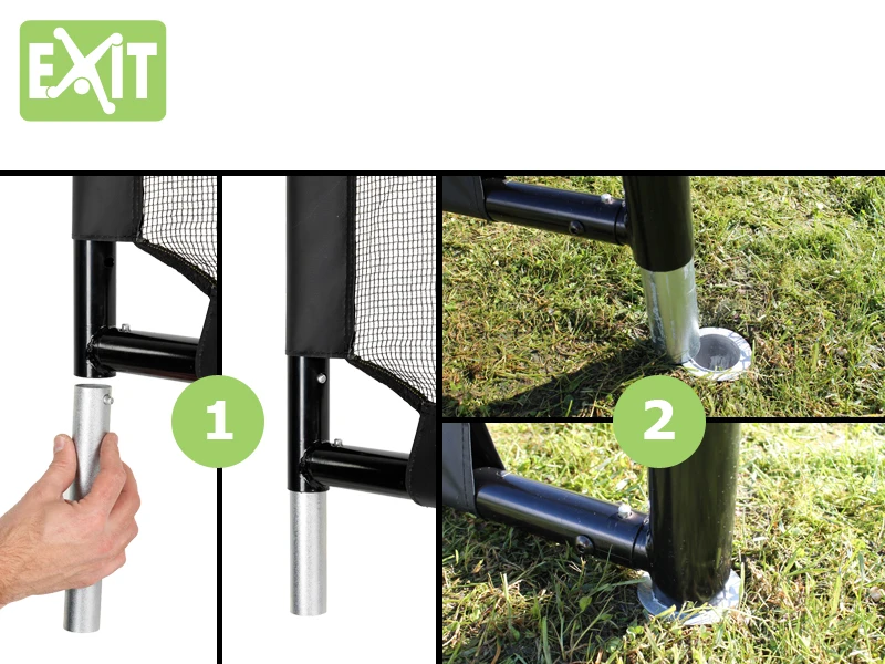 Voetbalgoal met afmetingen (b x h x d): 300 x 200 x 90 cm. Het voetbaldoel is zowel gegalvaniseerd als gepoedercoat. Voorzien van het innovatieve netopbouwsysteem van Exit.