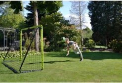 Het EXIT Tempo stalen voetbaldoel, in de kleuren groen en zwart, is robuust en mooi vormgegeven. Met de voetbaldoelen van EXIT Toys train je je voetbalvaardigheden eenvoudig op iedere locatie. Dankzij de praktische afmetingen past dit voetbaldoel in vrijwel iedere tuin.