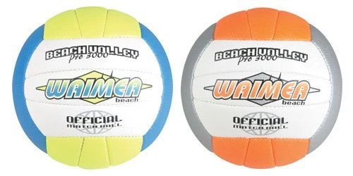 Handgenaaide beachvolleybal in zonnige kleurcombinatie + pomp.